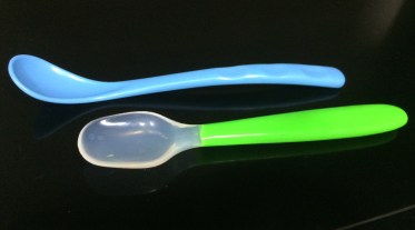 As with everything when you have a baby, first you need to get the gear – which means buying bibs and spoons. For bibs, there are a billion choices, and we opted for the kind that is easy to clean (just rinse under the water), and that has a pocket in the front (easy for cleanup and as a drip catcher). I found a great place at the Wan Chai market that I can get them for 15 HKD (2 USD, 18 SEK). For spoons, there are also a plethora of options – big, small, long, short, and so on. We already have these wonderful plastic spoons from Sweden that are unlike anything I have seen in the USA, but what I noticed when feeding the little guy is he still does not have control of his “chomp” – in other words he really bites down hard. So, when we were at this fantastic store in Mong Kok where everything is 12 HKD (1,75 USD, 15 SEK), and we found these baby spoons made of silicone, I jumped on it and bought a few.
