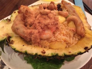 I had the Soft Shell Crab Fried Rice in a Pineapple. Basically anything served in a fruit is going to get my attention, because being from the Midwestern USA, the only things served in a fruit were maybe candy in a fruit-shaped bowl. So to eat fried rice in a pineapple is a bit of a novelty to me still, no-matter how many countries I visit or live in.