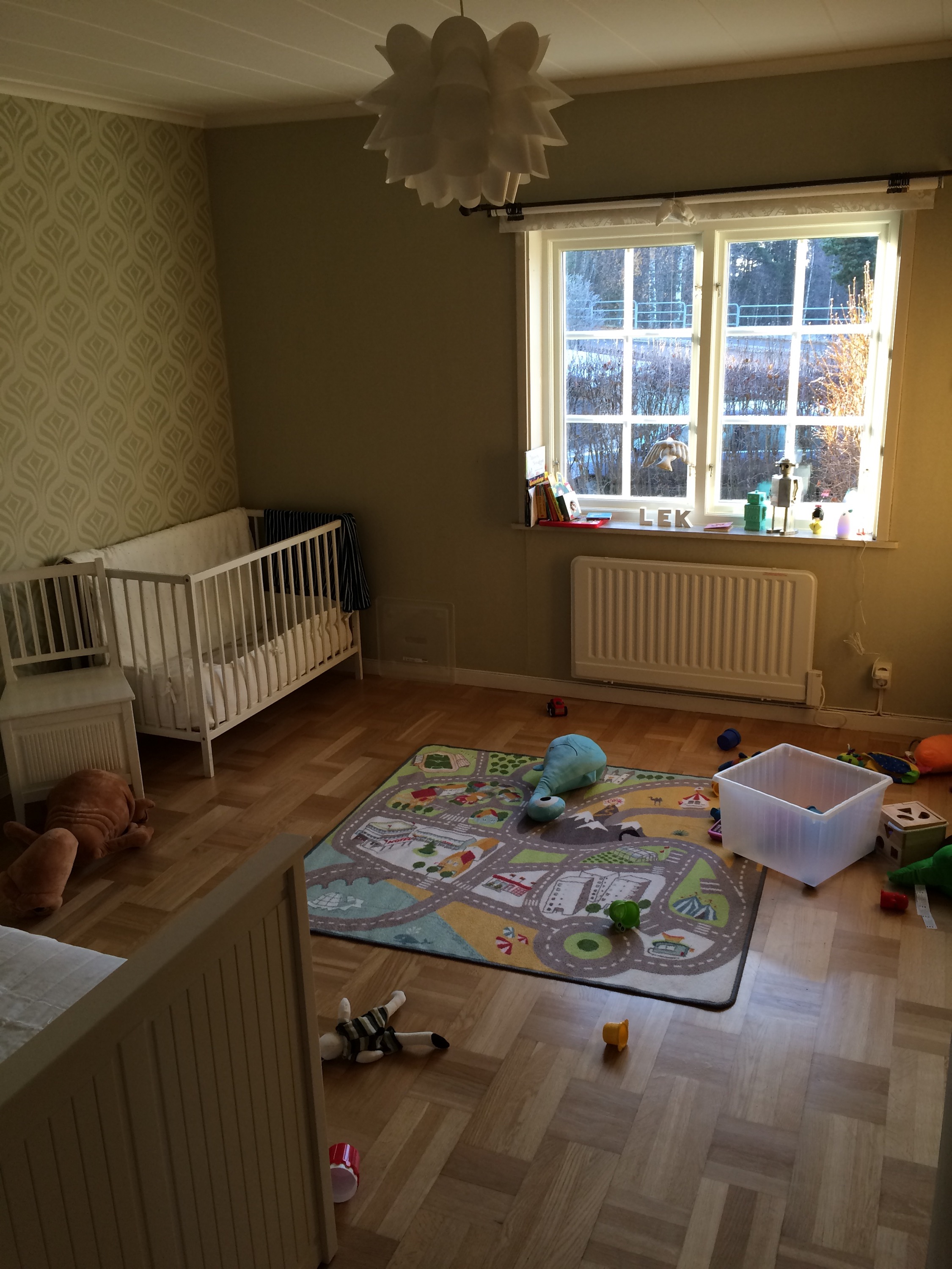 My wife arrived back home late last night, so it was nice to see her playing with the little guy this morning in his room. He has a fantastic rug from IKEA that has roads on it, and thus with cars it potentially provides hours of enjoyment.