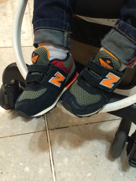 So, off we went to the mall. And there it was, the New Balance store. Damn! I looked in the window and those kids shoes are awesome! Not one pair, not two, but just about all of them looked cooler than mine. Next step, get into the tiny store and get a pair for him. Easier said than done. The shop is tiny.